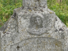 Kobieca głowa owinięta chustą pochodzi z betonowego nagrobka wykonanego w początku XX wieku.