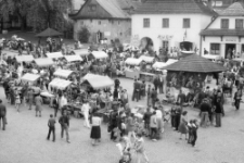 Fotografia przedstawia widok na Rynek w Kazimierzu Dolnym. W tle widoczny wlot ulicy Lubelskiej. ; Materiał przekazany Ośrodkowi "Brama Grodzka - Teatr NN" przez Ewę Hartwig-Fijałkowską.