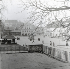 Fotografia przedstawia widok z ulicy Zamkowej na rynek w Kazimierzu Dolnym w stronę ulicy Klasztornej. ; Materiał przekazany Ośrodkowi "Brama Grodzka - Teatr NN" przez Ewę Hartwig-Fijałkowską.