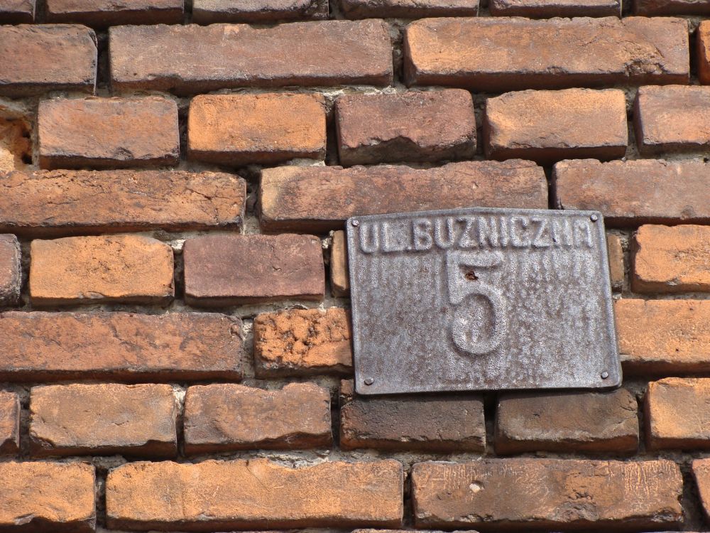 An old street name plate - Bużniczna 5 street in Kraśnik ; Старая табличка с названием улицы Бужнична, 5 в Краснике ; Стара табличка з назвою вулиці Бужнічна, 5 в Краснику